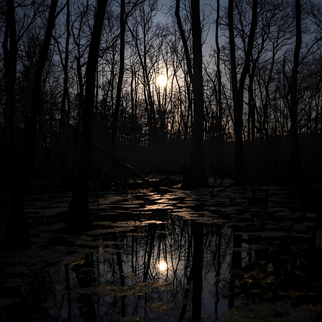 The swamp will go down, but we can stand on the edge and see the reflection of the light shining and we won't see a filtered view. We'll see a true view. We'll see a true reflection.